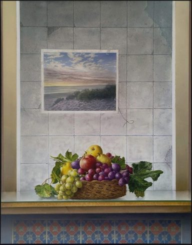 Bodegón paisaje, óleo sobre madera, 73x60 cm. Colección privada.