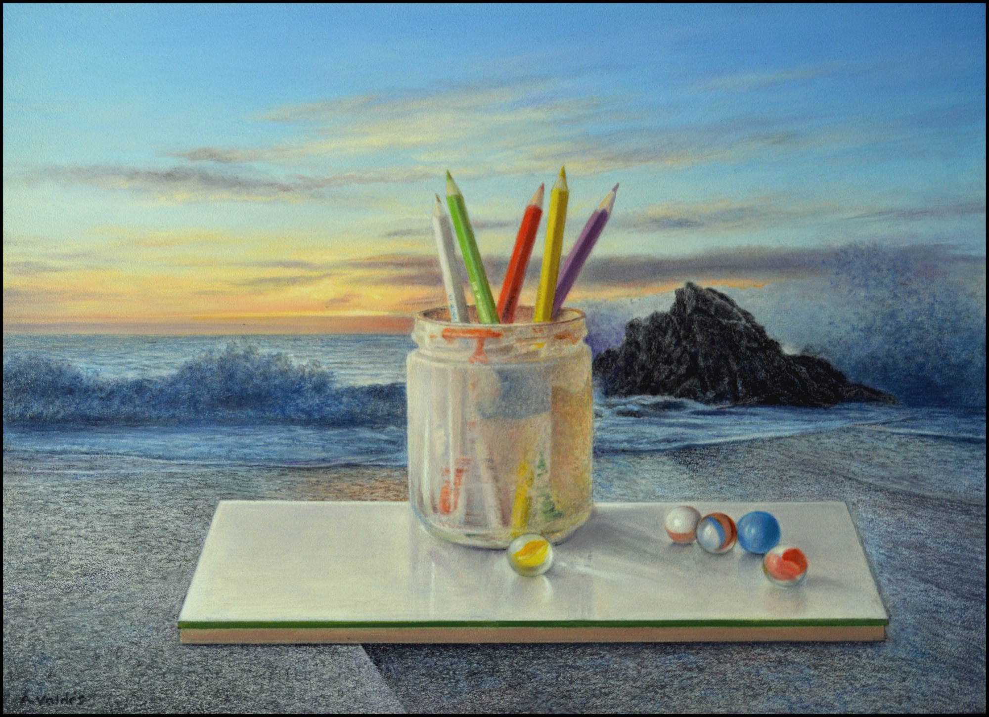 Bodegón junto al mar, óleo/lienzo sobre madera, 50 x 45cm. Colección privada.